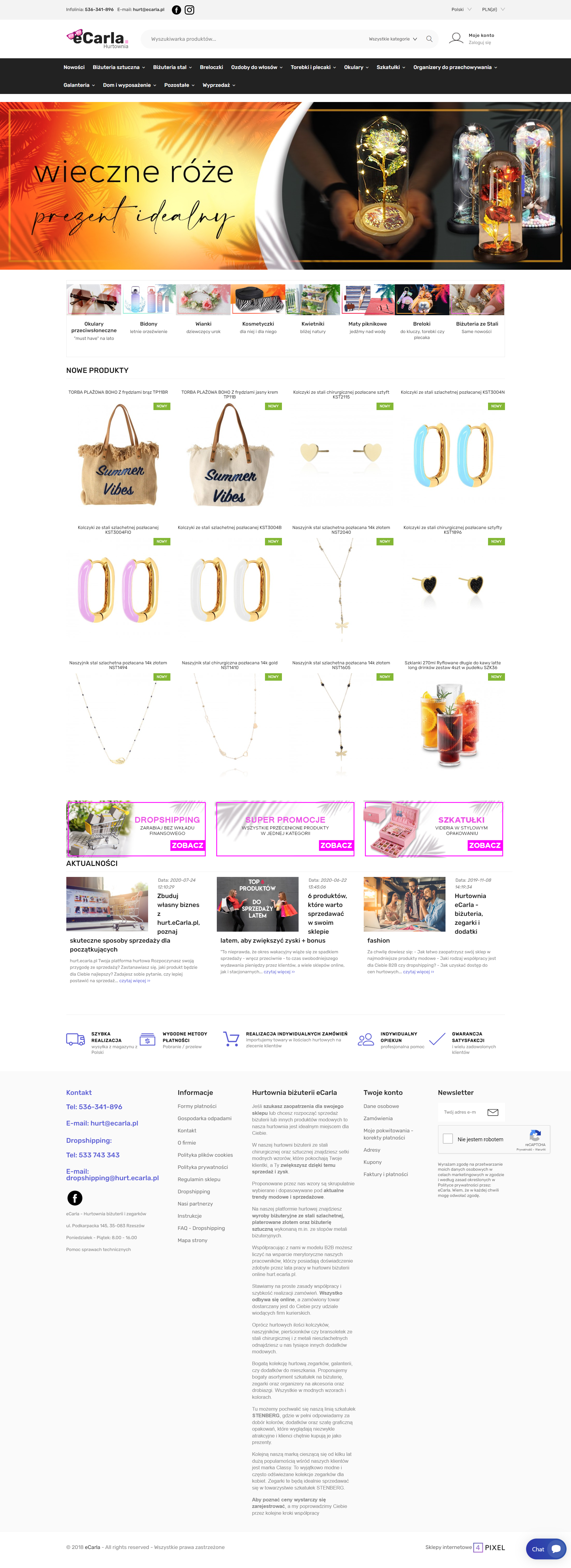 Jeśli szukasz zaopatrzenia dla swojego sklepu lub chcesz rozpocząć sprzedaż biżuterii lub innych produktów modowych to nasza hurtownia jest idealnym miejscem dla Ciebie. W naszej hurtowni biżuterii ze stali chirurgicznej oraz sztucznej znajdziesz setki modnych wzorów, które pokochają Twoje klientki, a Ty zwiększysz dzięki temu sprzedaż i zysk. Proponowane przez nas wzory są skrupulatnie wybierane i dopasowywane pod aktualne trendy modowe i sprzedażowe. Na naszej platformie hurtowej znajdziesz wyroby biżuteryjne ze stali szlachetnej, platerowane złotem oraz biżuterię sztuczną wykonaną m.in. ze stopów metali biżuteryjnych. Współpracując z nami w modelu B2B możesz liczyć na wsparcie merytoryczne naszych pracowników, którzy posiadają doświadczenie zdobyte przez lata pracy w hurtowni biżuterii online hurt.ecarla.pl.