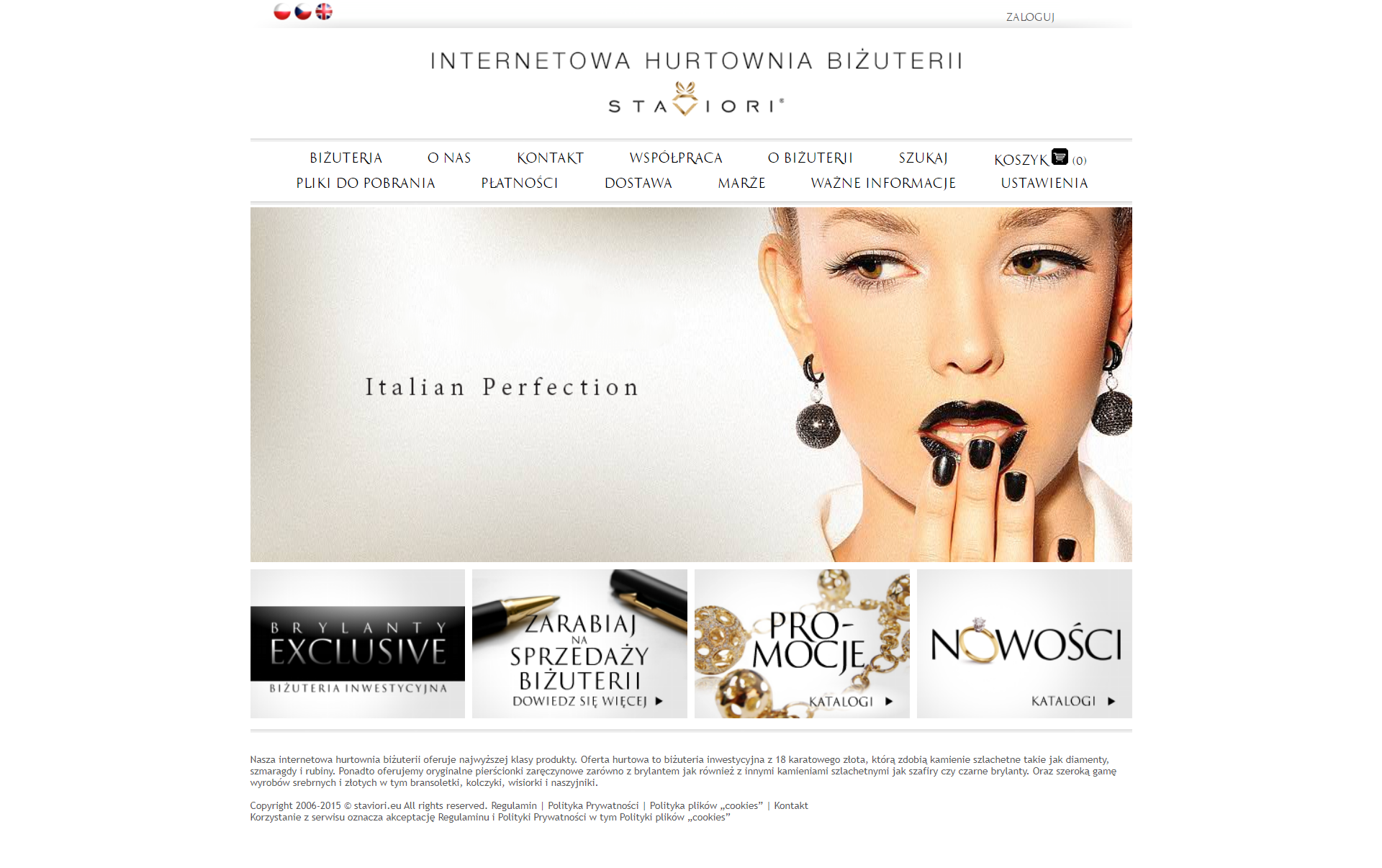 Nasza firma istnieje od 2006 roku, dzięki hurtowej sprzedaży internetowej oferujemy naszym klientom unikalną możliwość handlowania autentyczną biżuterią bez inwestowania kapitału. Nie posiadamy tradycyjnej stacjonarnej powierzchni wystawowej, a nasza sprzedaż opiera się wyłącznie na katalogach Online, aby koszty działalności ograniczyć do minimum. Jesteśmy wyłącznym przedstawicielem na Europę Środkową i Wschodnią ekskluzywnej włoskiej marki Staviori oferującej miedzy innymi najwyższej jakości BIŻUTERIĘ INWESTYCYJNĄ. Każda sztuka biżuterii z katalogu Brylanty Exclusive tworzona jest przez najznakomitszych mistrzów włoskiej sztuki złotniczej, wyłącznie z brylantów oraz innych kamieni szlachetnych połączonych z doskonałym 18 karatowym złotem. Biżuteria inwestycyjna Staviori to ponadczasowe dzieło sztuki, które olśniewa wszystkich dookoła.