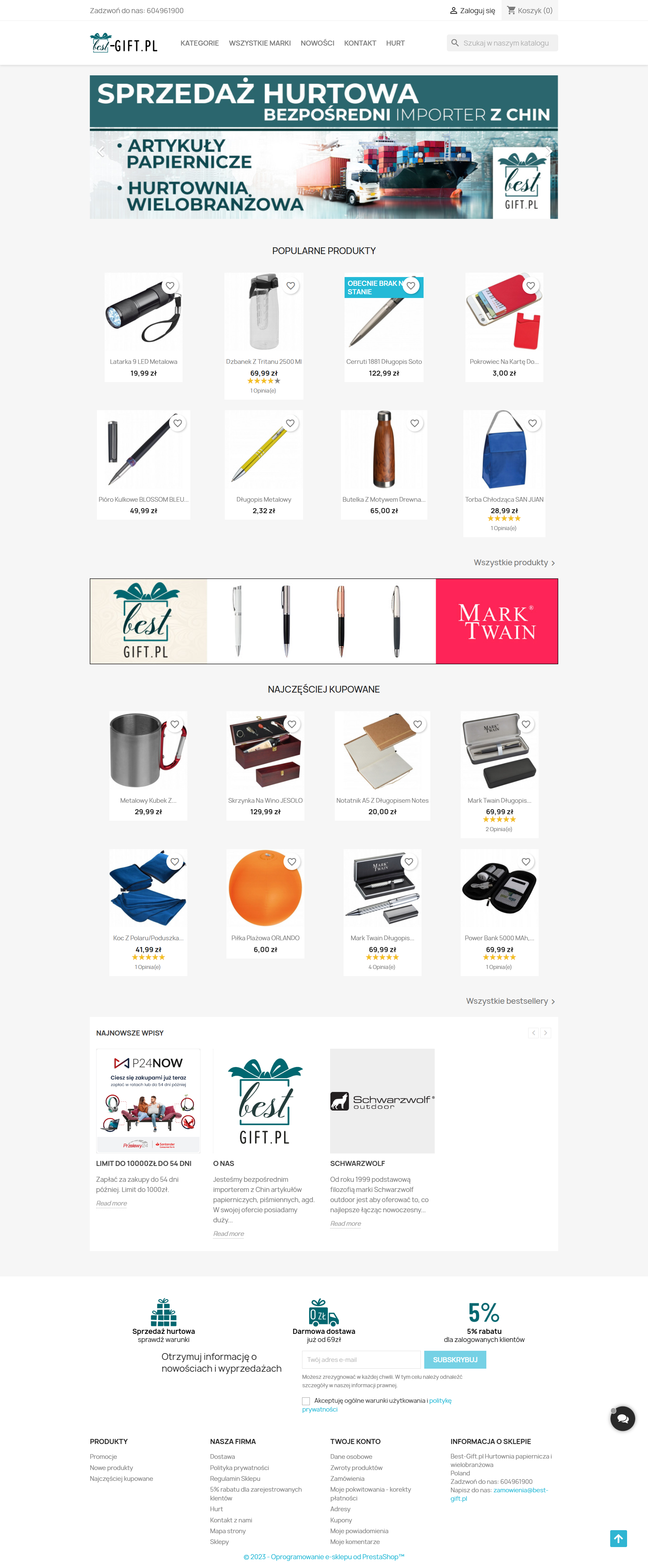 Nasza firma to hurtownia papiernicza oraz wielobranżowa, pełniąca rolę bezpośredniego importera z Chin. Specjalizujemy się w sprzedaży hurtowej, oferując produkty renomowanych marek, takich jak Mark Twain, Pierre Cardin, Schwarzwolf, Ferraghini, i wiele innych. Nasza oferta obejmuje bogaty wybór artykułów papierniczych oraz różnorodne produkty z innych kategorii. Dla naszych stałych klientów proponujemy elastyczne rozwiązania finansowe, w tym kredyt kupiecki i wydłużone terminy płatności. Jako solidny partner biznesowy, stawiamy na profesjonalizm i zadowolenie klienta, oferując kompleksową obsługę handlową.