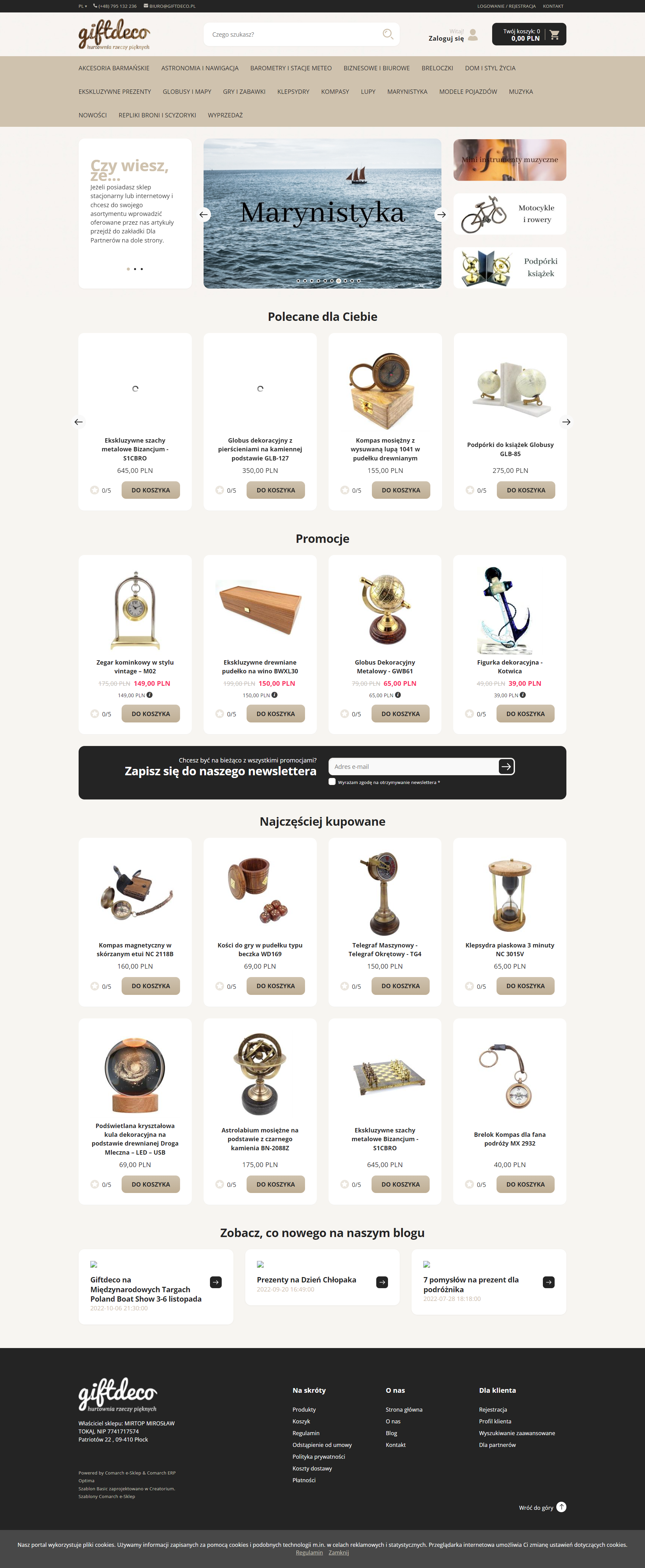 Jesteśmy hurtowym importerem produktów dekoracyjnych i upominkowych, głównie w stylu retro. Nasza oferta obejmuje ponad 600 starannie wyselekcjonowanych produktów, takich jak: lampy elektryczne i żeglarskie, ramki na zdjęcia, globusy, astrolabia, barometry, higrometry, stacje pogody, kompasy, klepsydry, gry tradycyjne, szkła powiększające, dzwony, dzwonki, zegary, lunety, lornetki, breloczki do kluczy, metalowe modele łodzi, samolotów i samochodów, popielniczki, notesy skórzane, oraz upominki o tematyce marynistycznej i wiele innych. Zapraszamy do współpracy, oferując unikalne i wysokiej jakości produkty. Nasza szeroka gama to doskonałe rozwiązanie dla sklepów z artykułami dekoracyjnymi oraz prezentowymi. Działamy z pasją, dbając o różnorodność asortymentu, by sprostać oczekiwaniom naszych klientów.
