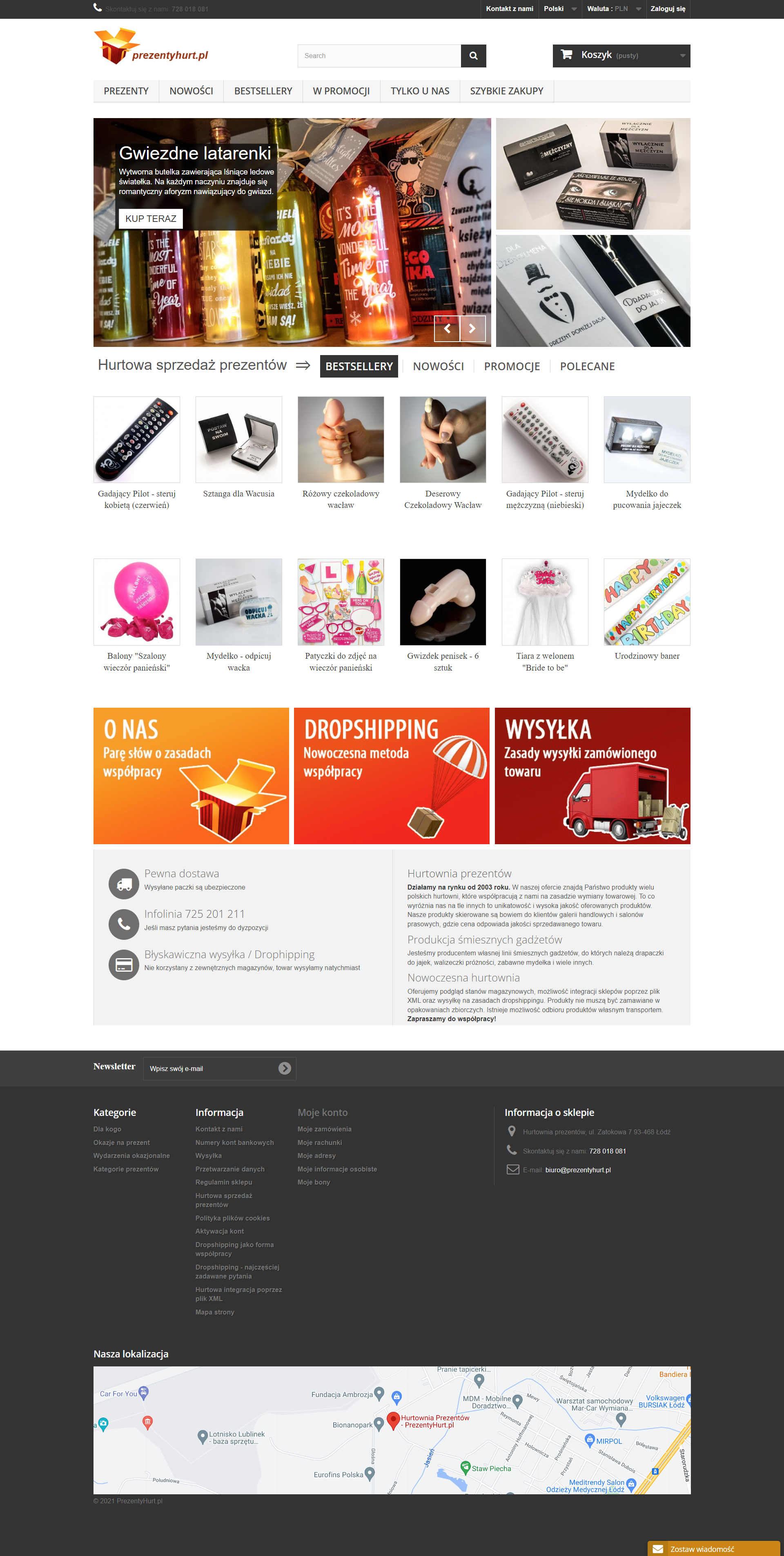 Działamy na rynku od 2003 roku. W naszej ofercie znajdą Państwo produkty wielu polskich hurtowni, które współpracują z nami na zasadzie wymiany towarowej. To co wyróżnia nas na tle innych to unikatowość i wysoka jakość oferowanych produktów. Nasze produkty skierowane są bowiem do klientów galerii handlowych i salonów prasowych, gdzie cena odpowiada jakości sprzedawanego towaru. Jesteśmy producentem własnej linii śmiesznych gadżetów, do których należą drapaczki do jajek, walizeczki próżności, zabawne mydełka i wiele innych. Zapraszamy do współpracy.