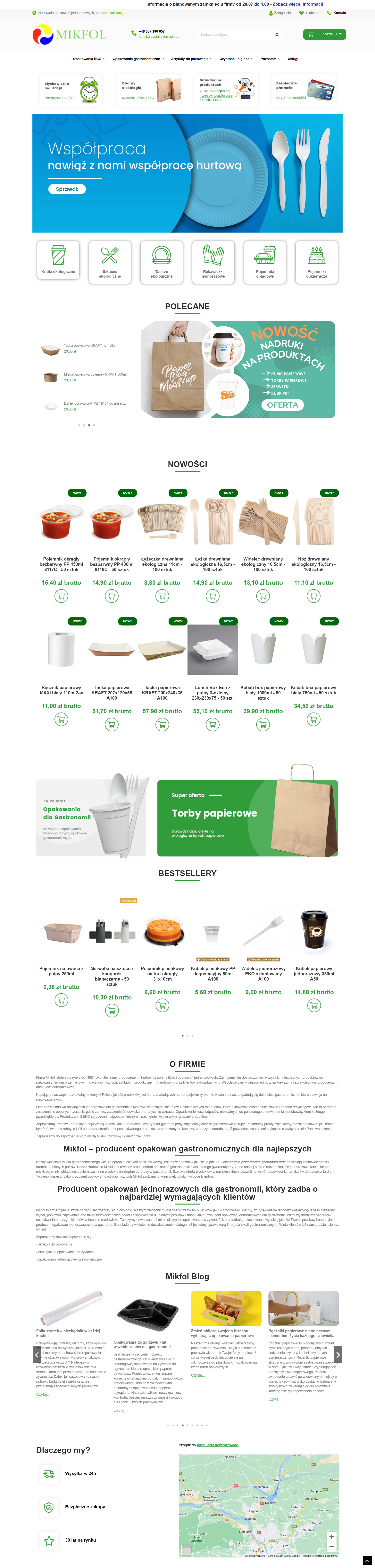 Jesteśmy producentem i hurtownią pojemników i opakowań jednorazowych. Zajmujemy się dostarczaniem wszystkich niezbędnych produktów do pakowania firmom przemysłowym, gastronomicznych, zakładom produkcyjnym, handlowym oraz klientów indywidualnych. Współpracujemy bezpośrednio z największymi i sprawdzonymi producentami artykułów jednorazowych. Kupując u nas wspierasz lokalny przemysł! Polska jakość produktów jest jedną z wiodących na europejskim rynku – to właśnie u nas zaopatrują się duże sieci gastronomiczne, które stawiają na najwyższą jakość! Oferujemy Państwu rozwiązania jednorazowe dla gastronomii z tworzyw sztucznych, ale także z ekologicznych materiałów, które z łatwością można zutylizować i poddać recyklingowi. Zapraszamy do odwiedzenia naszej strony www.opakowania-mikfol.pl znajdziecie tam Państwo naszą pełną ofertę.