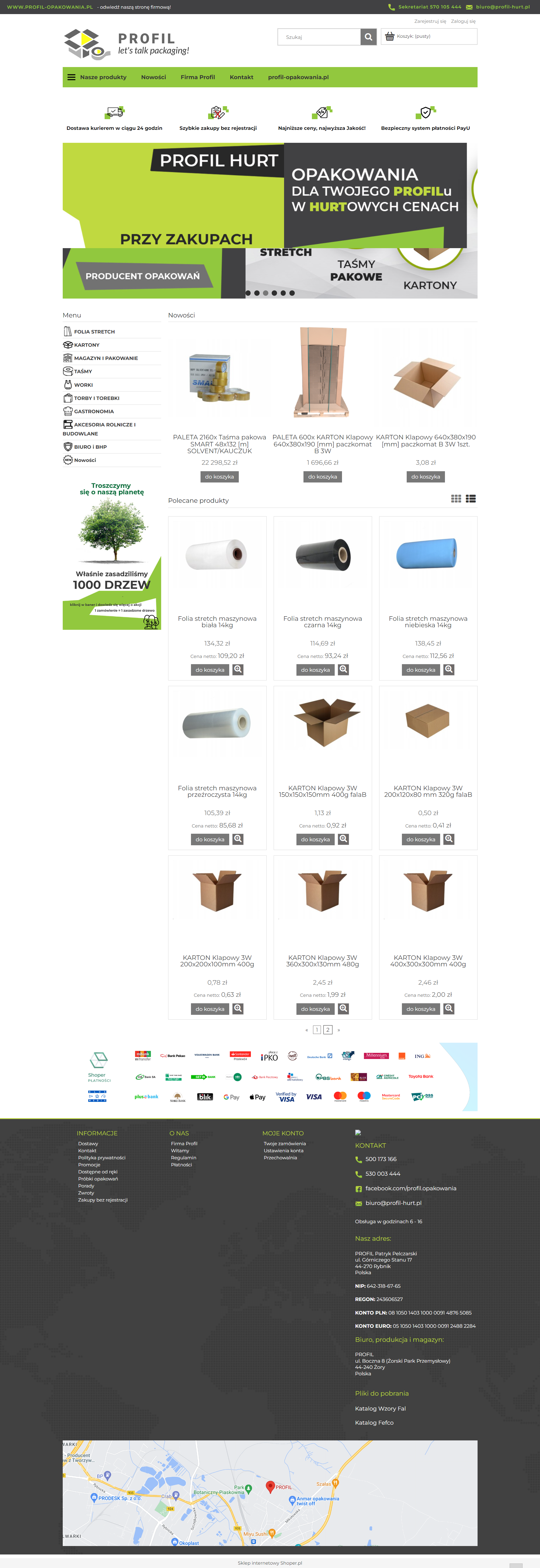 Specjalizujemy się w produkcji i dystrybucji materiałów opakowaniowych z tworzyw sztucznych i tektury. Naszym flagowym produktem jest folia stretch wytwarzana metodą CAST z najwyższej jakości granulatów. Jesteśmy dumni z terminowości dostaw i stabilności finansowej, co stanowi wyróżniające nas cechy. Kładziemy ogromny nacisk na perfekcyjną jakość oferowanych produktów, dbając o to, aby każda dostawa była zabezpieczona i dotarła do klienta punktualnie. Nasza firma PROFIL dostarcza towary zarówno na terenie Polski, jak i Unii Europejskiej. Posiadamy zdolność do ciągłego rozwoju i jesteśmy dumni z osiągnięć, które udało nam się zdobyć. Jesteśmy zobowiązani do utrzymania najwyższych standardów, co pozwala nam z powodzeniem konkurować na rynku opakowań. Zapraszamy do odwiedzenia naszej strony www.profil-hurt.pl znajdziecie tam Państwo naszą pełną ofertę.