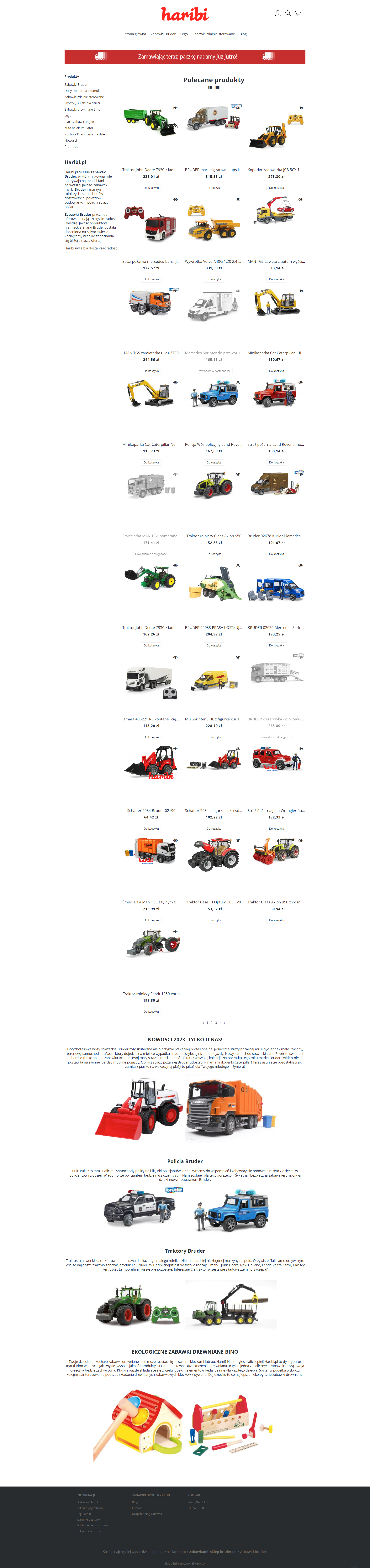 Haribi.pl to wyjątkowy Klub Zabawek Bruder, gdzie najmłodsi fani najwyższej jakości zabawek marki Bruder mogą odkrywać fascynujący świat maszyn rolniczych, samochodów dostawczych, pojazdów budowlanych, a także służb mundurowych takich jak policja i straż pożarna. Nasza oferta skupia się na produktach Bruder, które nie tylko dostarczają radości, ale również wzbogacają wiedzę dzieci. Zabawki Bruder są uznane na całym świecie ze względu na ich niemiecką jakość i staranne wykonanie. W Haribi.pl pragniemy przekazać tę radość i jakość naszym klientom, zapraszając do zapoznania się z szerokim asortymentem zabawek Bruder dostępnych w naszym klubie. Cieszymy się, że możemy być częścią dziecięcych przygód, inspirując do kreatywnej zabawy i rozwijania wyobraźni. Zapraszamy serdecznie do Haribi.pl, gdzie jakość, niezapomniane chwile i edukacyjna przygoda spotykają się w magiczny sposób.