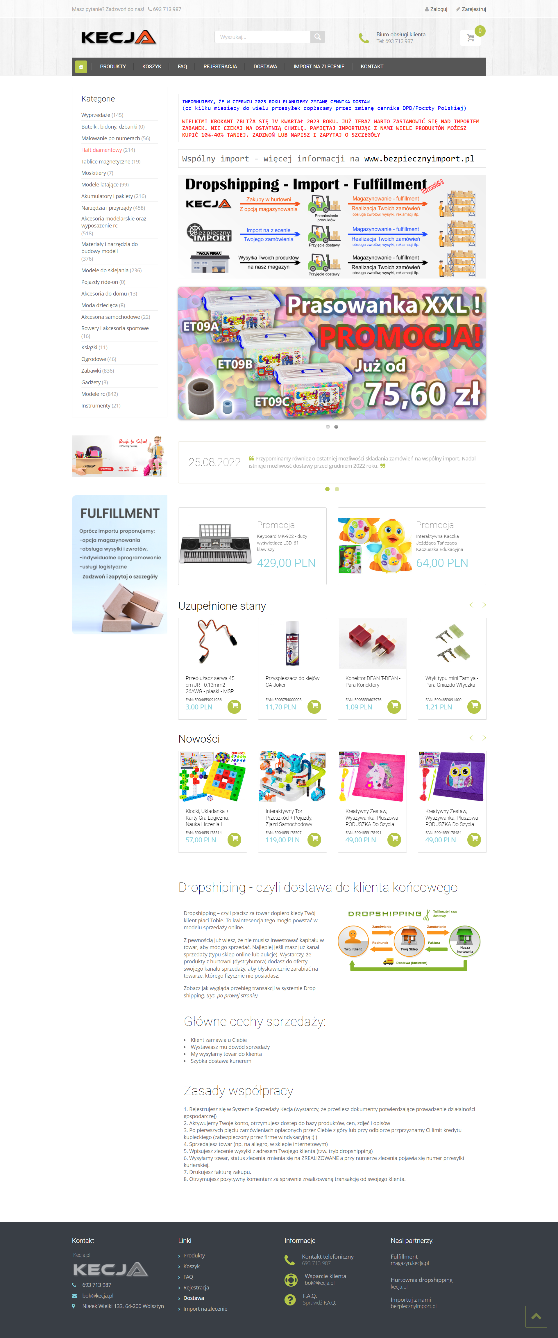 Kecja to dynamiczna hurtownia zabawek, oferująca różnorodne produkty takie jak helikoptery zdalnie sterowane, modele rc, gry, narzędzia do budowy modeli, odzież, akcesoria do domu i wiele innych. Nasza oferta stale się poszerza, a codziennie dokładnie aktualizujemy stany magazynowe, aby zapewnić naszym klientom najnowsze i najbardziej atrakcyjne produkty. Jako hurtownia zabawek, dbamy o różnorodność asortymentu, aby sprostać oczekiwaniom zarówno dzieci, jak i dorosłych. Oferujemy także produkty z kategorii rc, narzędzi do modelowania oraz praktyczne akcesoria do domu. Zapraszamy do współpracy wszystkich zainteresowanych sklepów, przedsiębiorców oraz klientów detalicznych. Nasza firma zawsze stawia na świeżość oferty i konkurencyjne ceny. Z Kecją każda współpraca to szansa na dostęp do innowacyjnych produktów i zaspokojenie różnorodnych potrzeb naszych klientów.