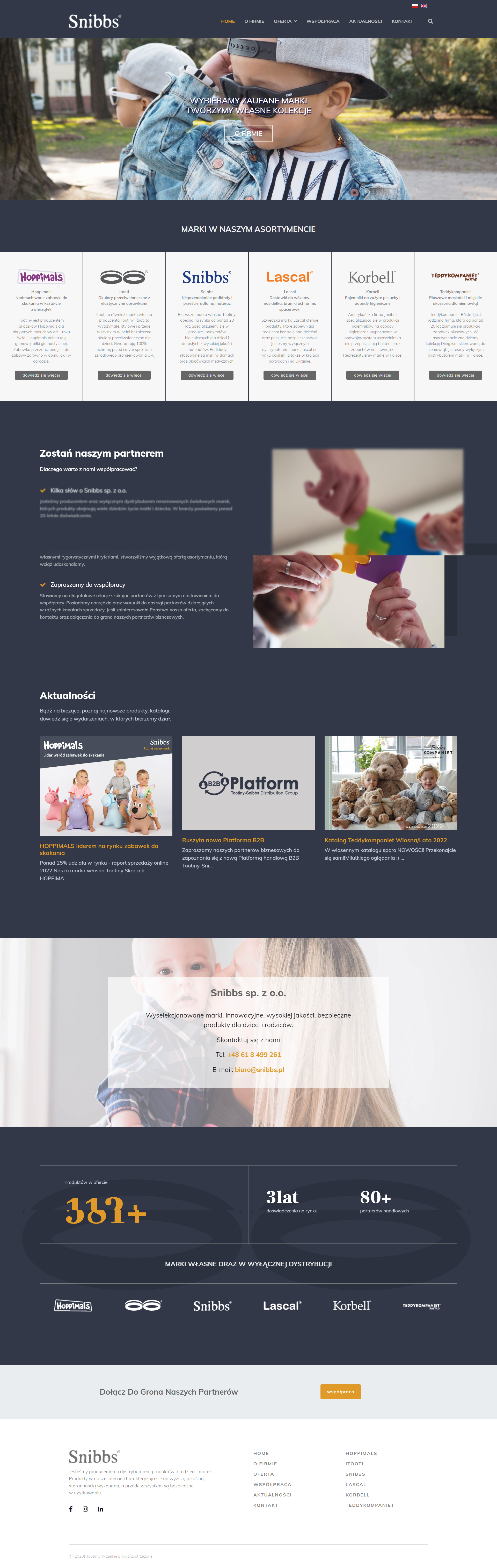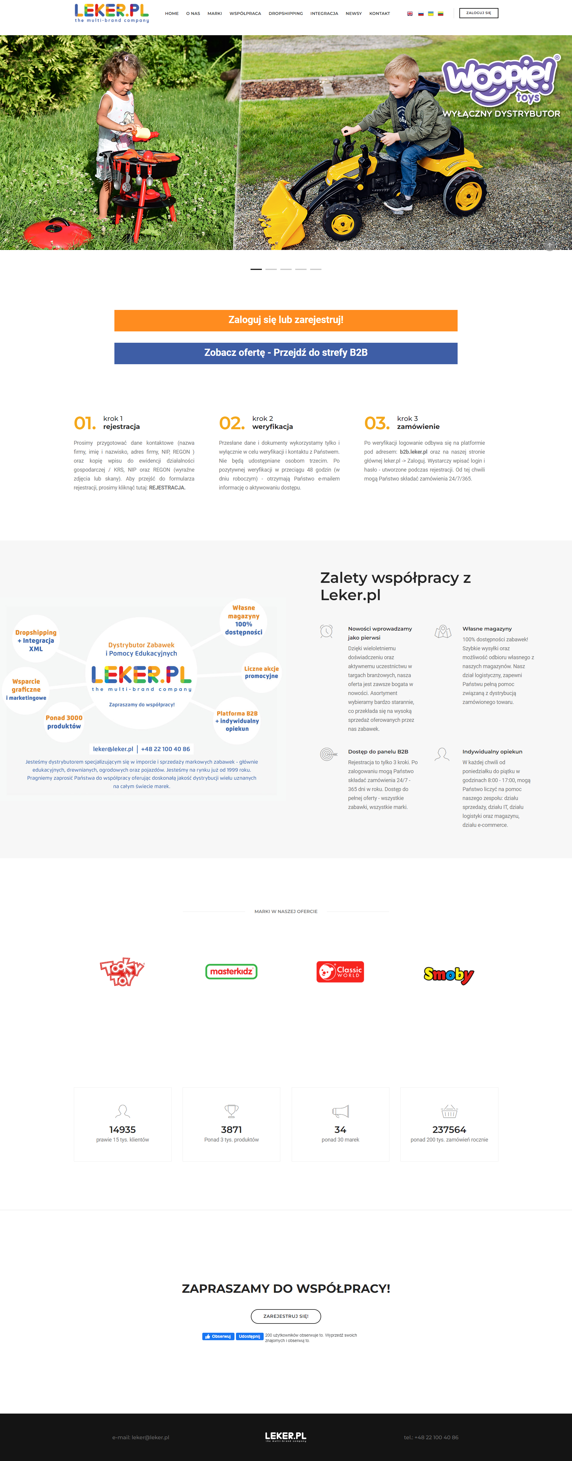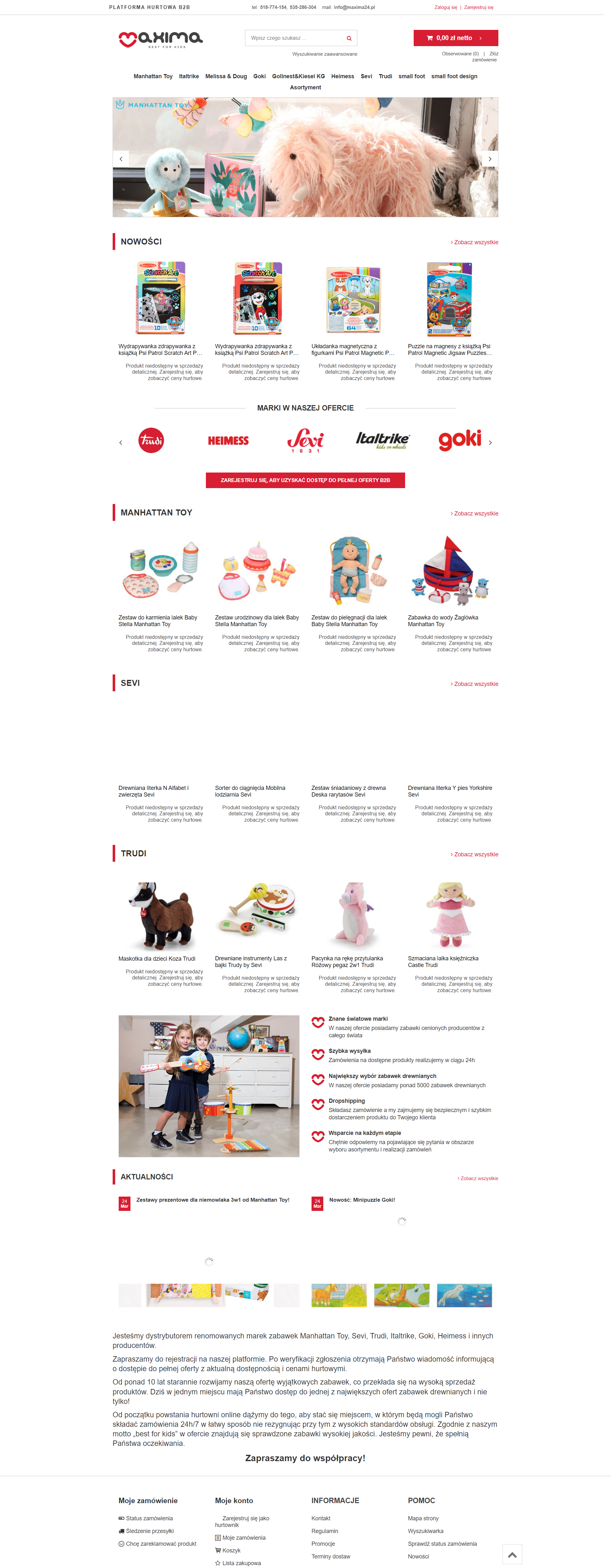 Jesteśmy zaangażowani w dystrybucję produktów dziecięcych od początku 2004 roku. Zdobyte przez lata doświadczenie pozwala nam spojrzeć na Wasz biznes z nieco szerszej perspektywy. Obecnie rynek branży dziecięcej ulega dynamicznym zmianom a my wychodzimy im naprzeciw. Chcemy pomóc Wam w prowadzeniu biznesu oferując odpowiednie narzędzia, które pozwolą go uprościć i zaoszczędzić Wasz cenny czas. Stąd powstała platforma internetowa działająca 24 godziny na dobę, służąca do składania zamówień, sprawdzania dostępności, pobierania zdjęć produktów oraz przekazywaniu informacji dot. naszej współpracy. Prowadzimy dystrybucję jedynie kilku wyselekcjonowanych marek produktów. Sprzedaż produktów tych marek pozwala odpowiednio wynagrodzić Wasz wkład i wysiłek włożony w sprzedaż.