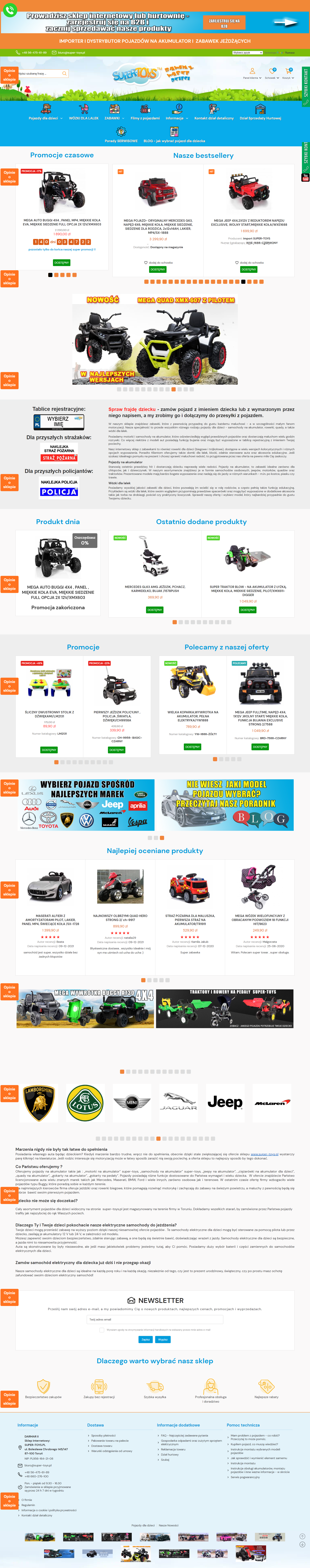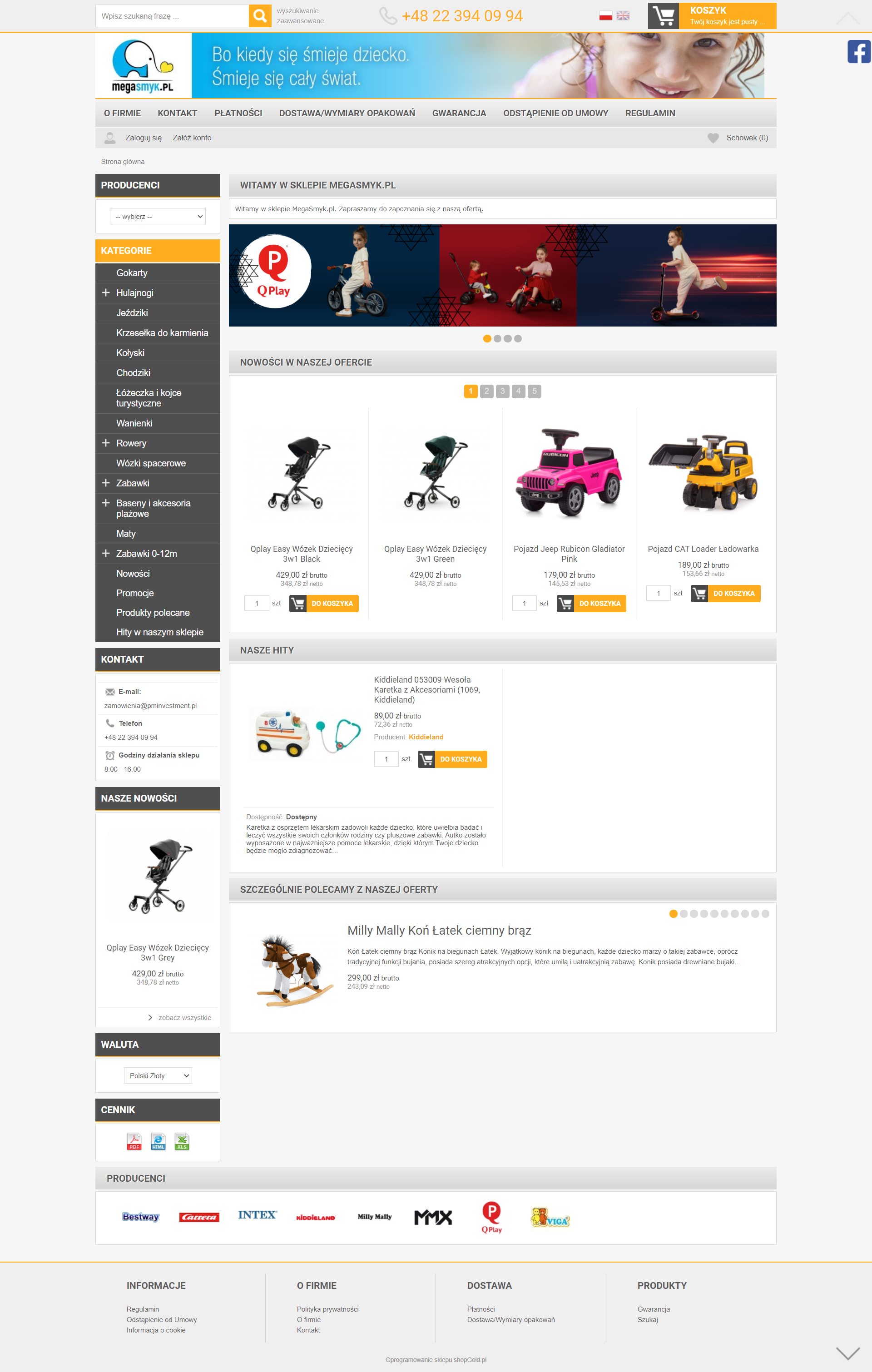 Nasz sklep powstał z miłości do dzieci. Jako rodzice szczególną wagę przykładamy do tego, aby oferowane przez nas zabawki i akcesoria dla maluchów były bezpieczne, funkcjonalne i wysokiej jakości. Zabawki i akcesoria dostępne w naszym sklepie, w pierwszej kolejności trafiają do profesjonalnych i wymagających testerów- naszych dzieci! Dopiero po przejściu testów w warunkach bojowych trafiają do Was. na biegunach, rowerki dla dzieci oraz rowerki biegowe, a także zabawki edukacyjne i samochody na akumulator. W naszej ofercie znajdziecie ciekawe zabawki dla chłopców, piękne zabawki dla dziewczynek oraz funkcjonalne i rozwijające zabawki kreatywne.